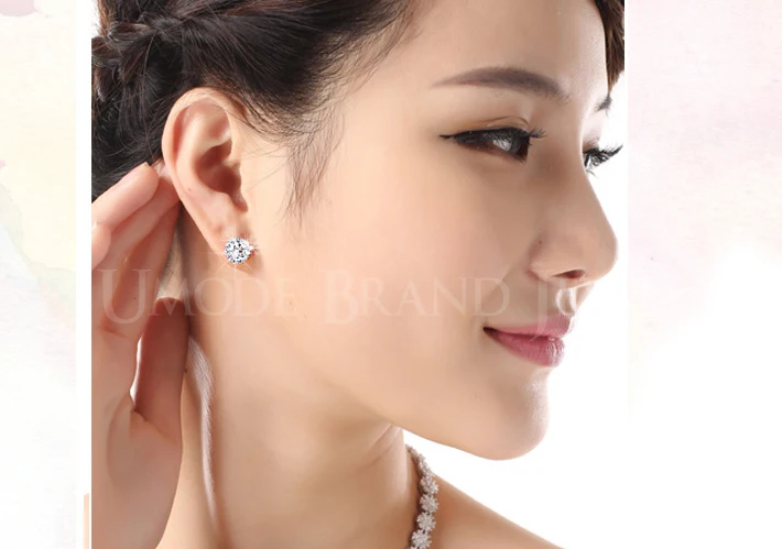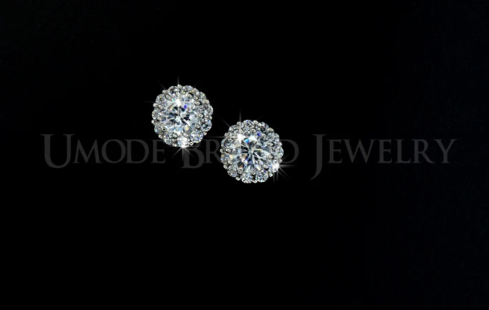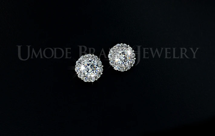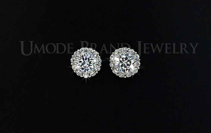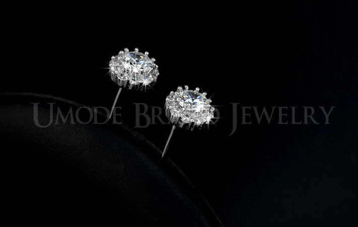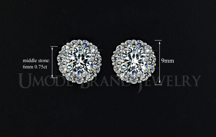 UMODE бренд 6 мм 0.75ct кубический цирконий камень окруженный цветок Пост Серьги